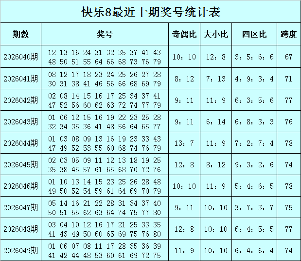福彩答应8第2026049期开奖总结:01 06 07 08 11 17 28 35 36 39 41 42 44 48 53 60 61 69 72 75,其中奖号012路比为9:4:7,奖号余数012路比为6:7:7。