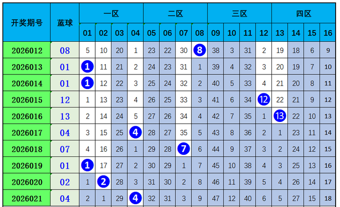 双色球第2026021期开奖奖号:红球03、13、25、26、30、31,蓝球04。龙头03,凤尾31,奇偶比4:2,开出2枚重号。