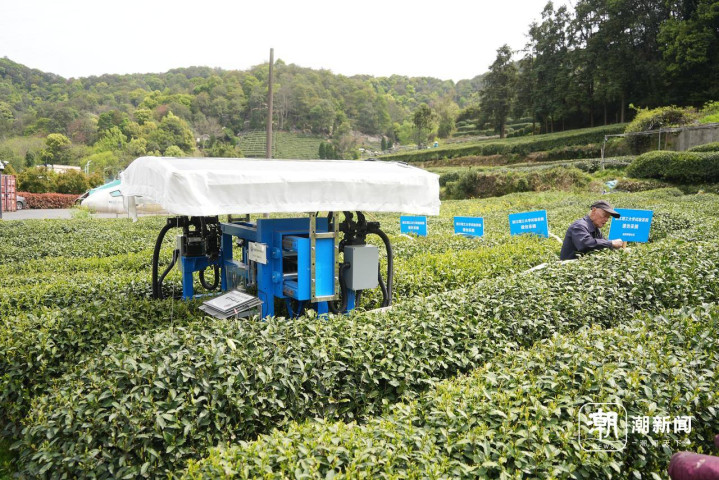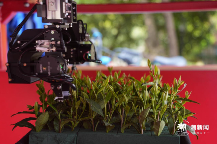 脚下,杭州西湖龙井茶大面积斥地,留住街说念茶园初度在采摘中引入AI采摘机器东说念主。