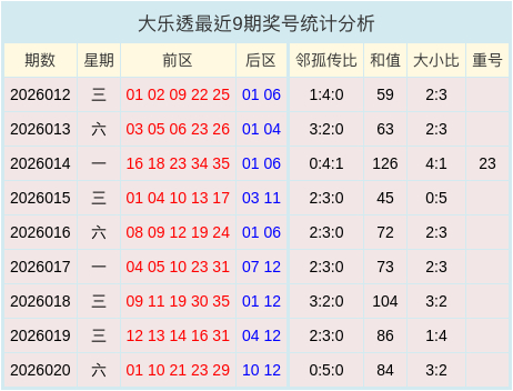 华体会体育app 021期麦育敏大乐透沟通奖号:大小比分析