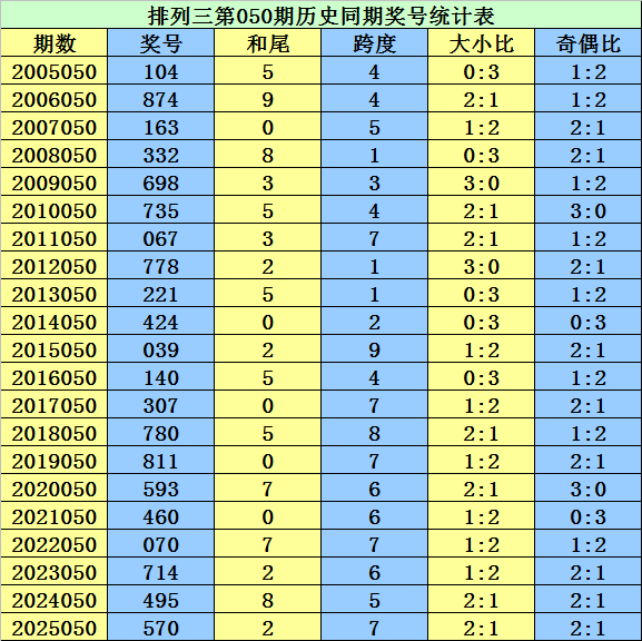 和尾保举:摆设三第050期历史同时,和尾大小比开出10:11,012路比开出8:2:11,奇偶比开出10:11,奖号和尾开出期数折柳为:和尾 0、5→5期,和尾2→4期,和尾3、7、8→2期,和尾9→1期,和尾1、4、6→0期,本期适合关切小和尾出现,参考和尾4。