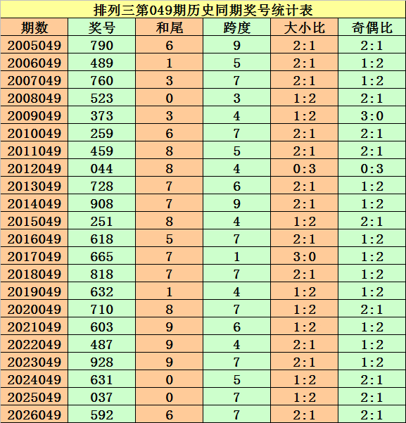 上期精采:摆设三第2026049期奖号开出592。