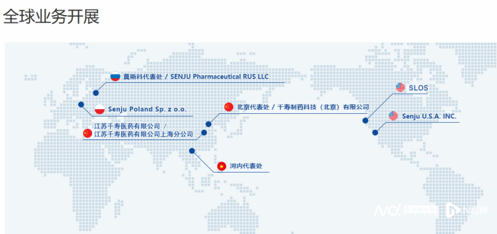 日本千寿制药群众业务开展布局图。