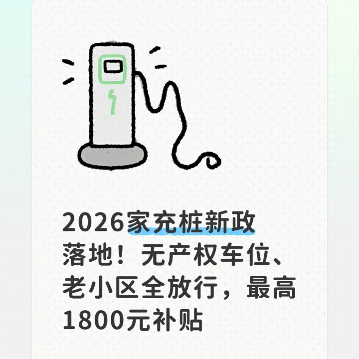 往常,几许车主因为租的车位、住在老少区,求遍物业、跑断腿也装不上家充桩,只可天天去寰球充电站列队、花高价电费。从今天起,这一切都成为历史。底下,咱们就把这份2026年最新、最全的家充桩装配指南,从策略解读、请求条目、办理经过、补贴申领到避坑维权,一次性讲得清清楚楚,让每一位车主都能顺利达成“家充摆脱”。