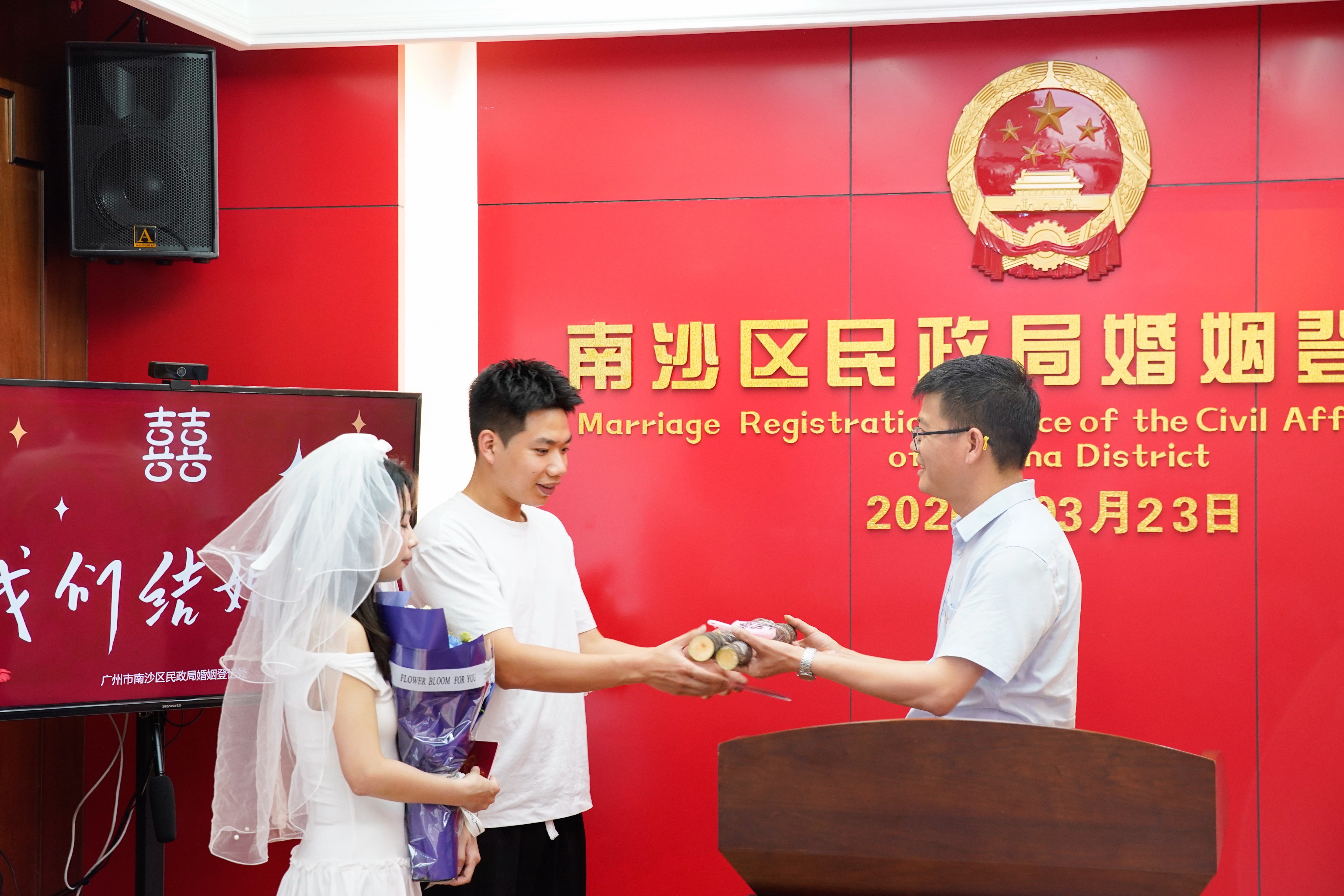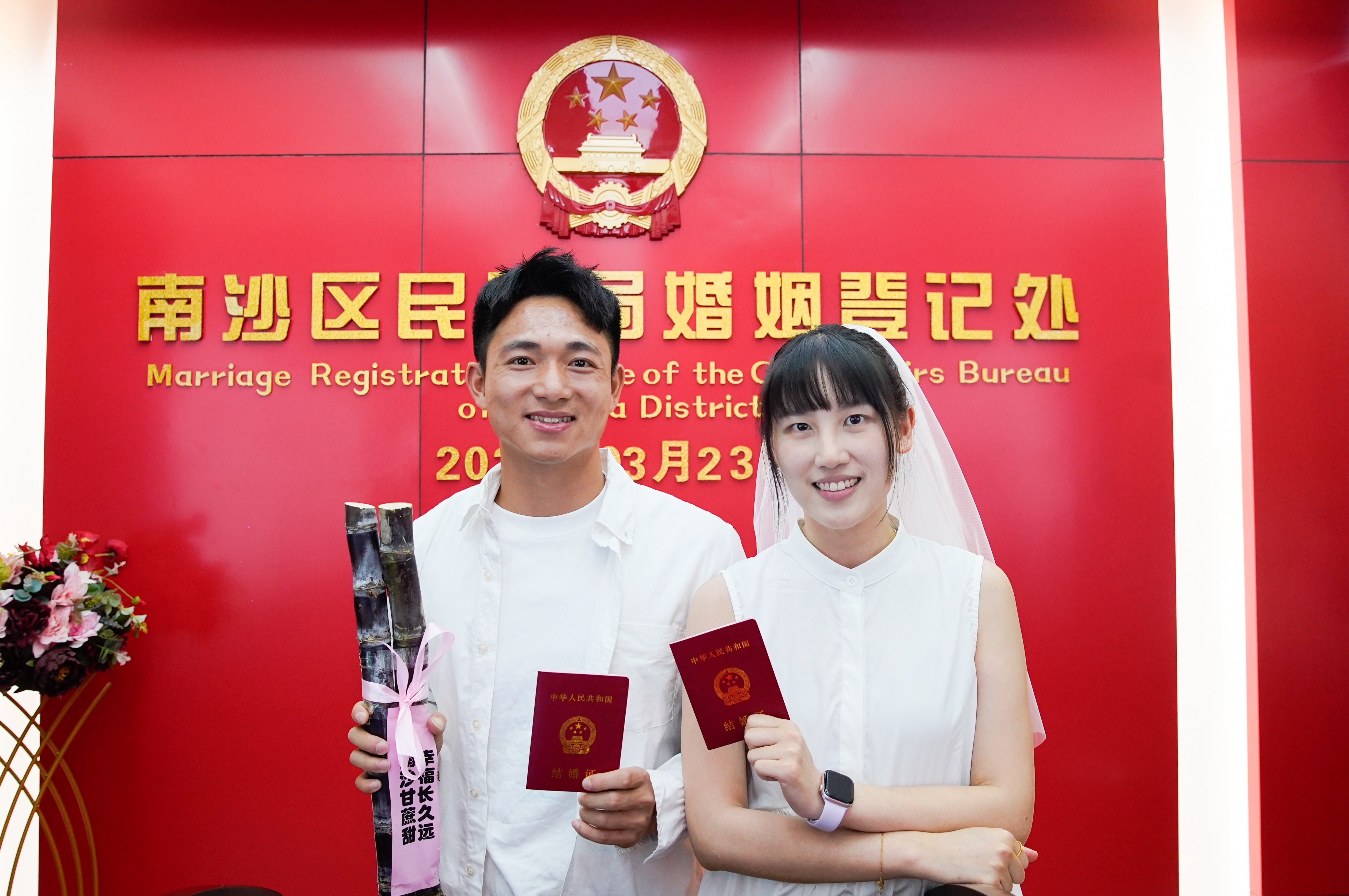 华体会体育app官网 特写|一蔗寄良缘!广州南沙新东谈主领证甜出圈